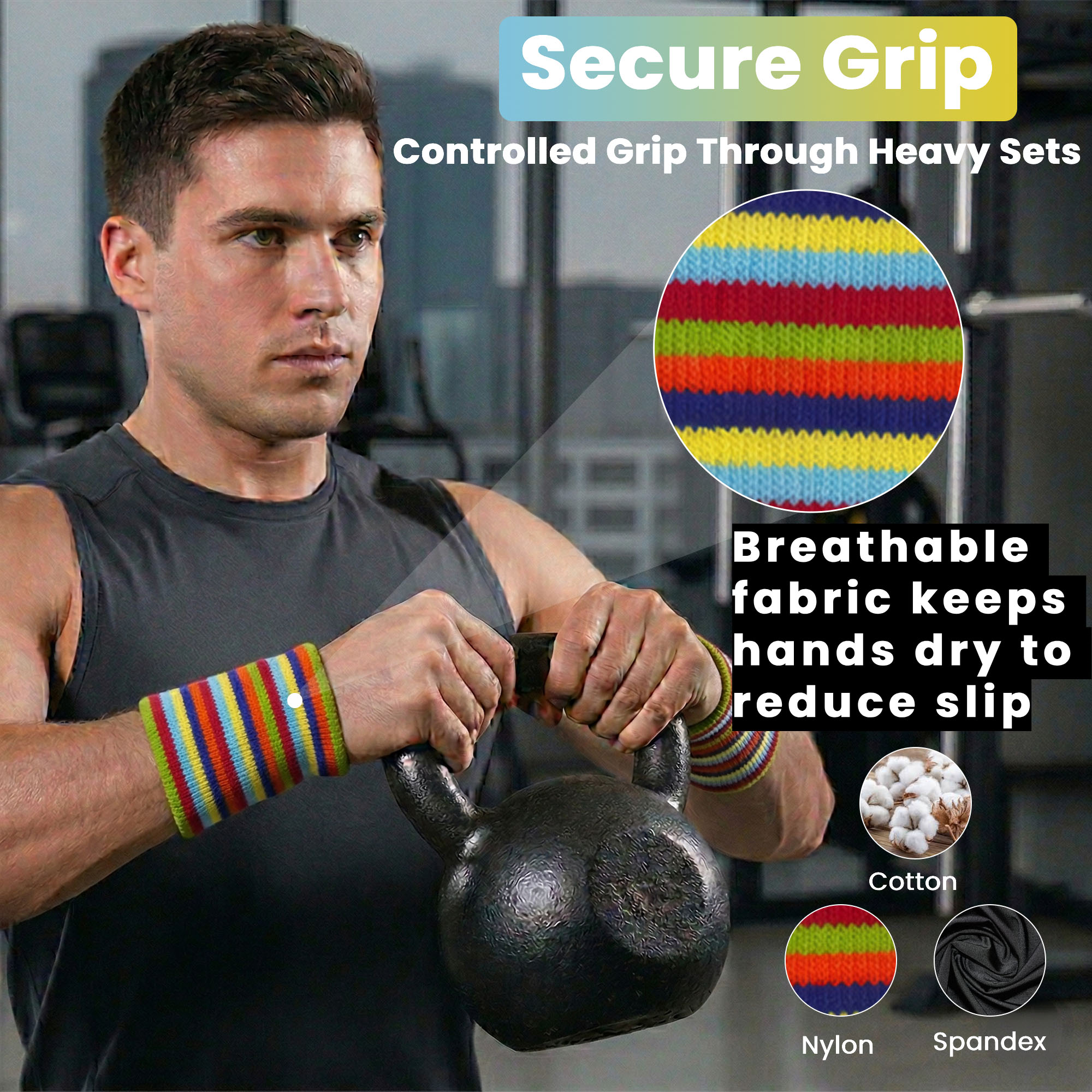 Sweat Control: Breathable, sweat-wicking fabric keeps your grip dry for safe, confident lifting.