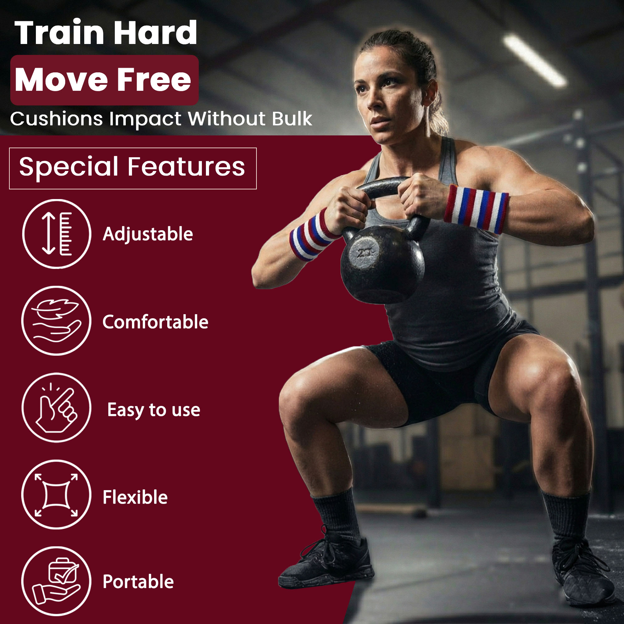 • Impact-absorbing wristbands for kettlebell workouts